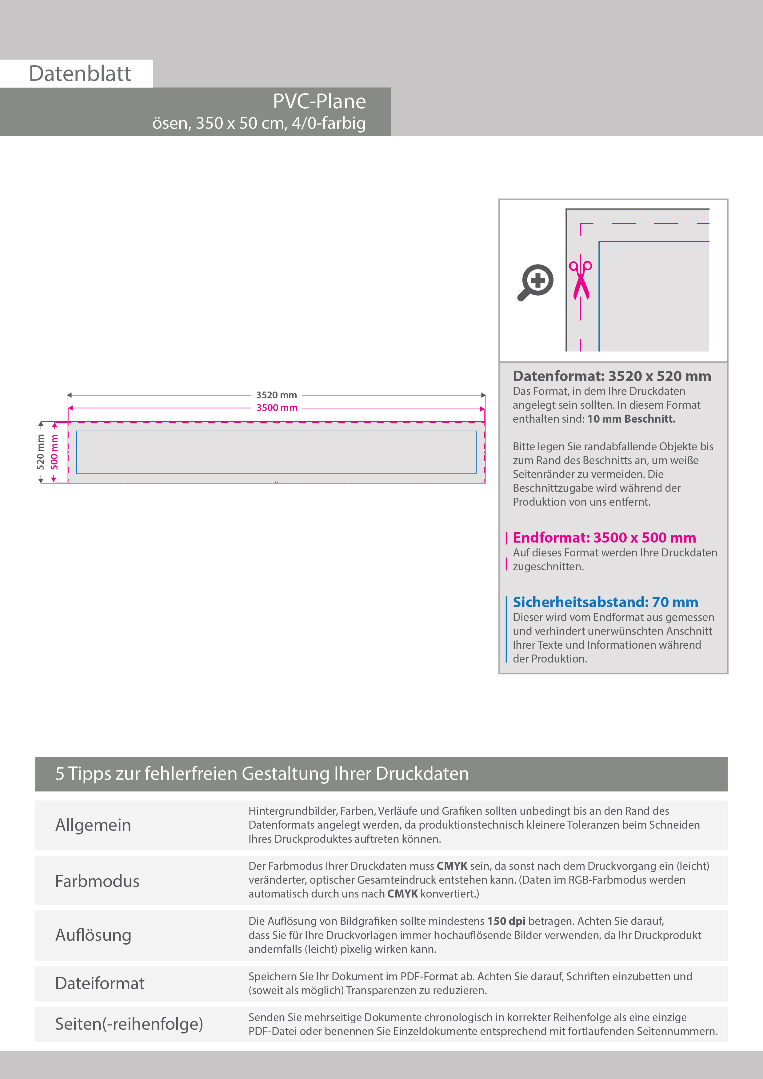 Hochwertige PVC-Plane 350 x 50 cm, 4/0-farbig bedruckt, Ösen im Abstand von 50 cm rundum