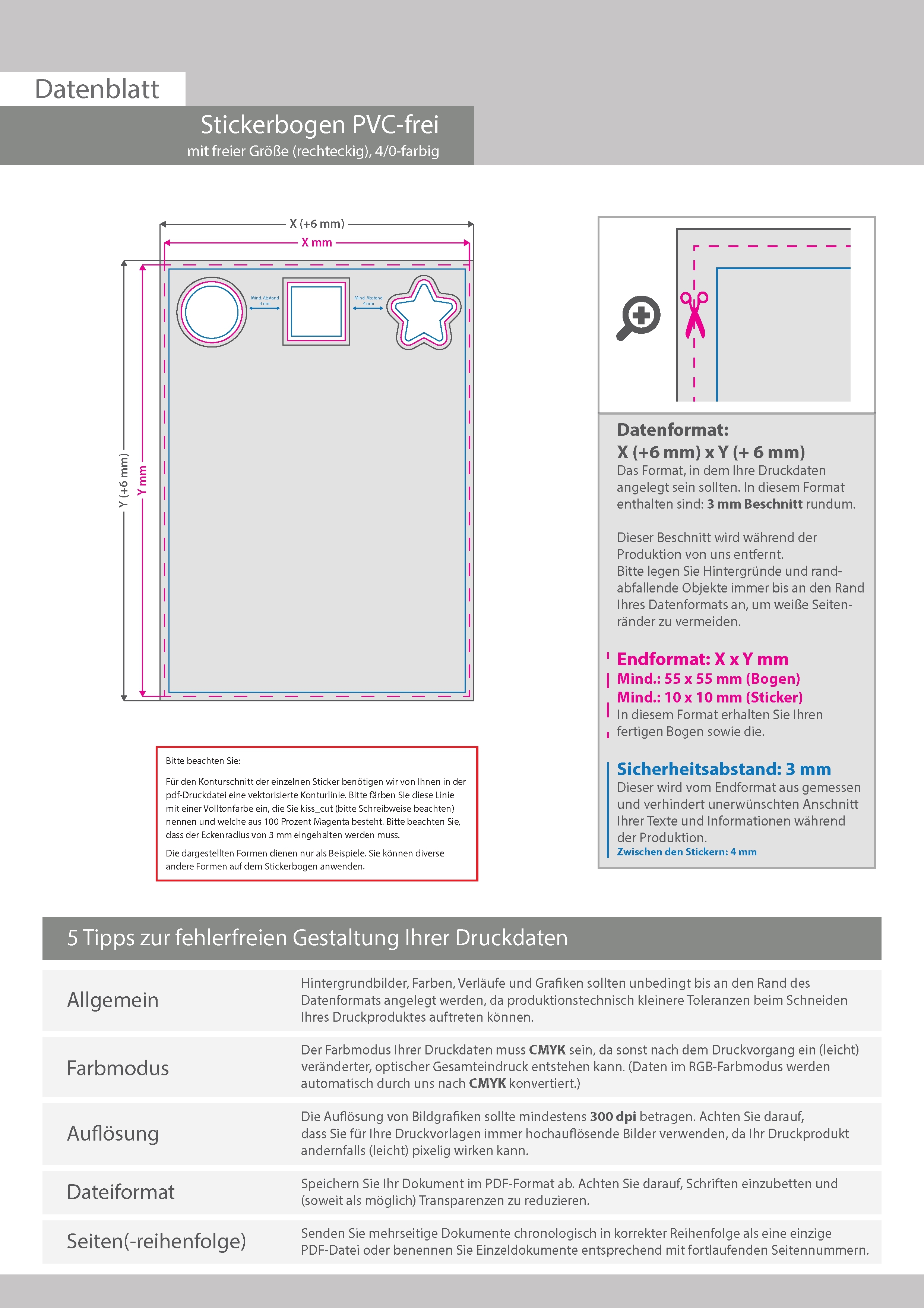 Stickerbogen PVC-frei, 4/0 farbig bedruckt mit freier Größe (rechteckig)