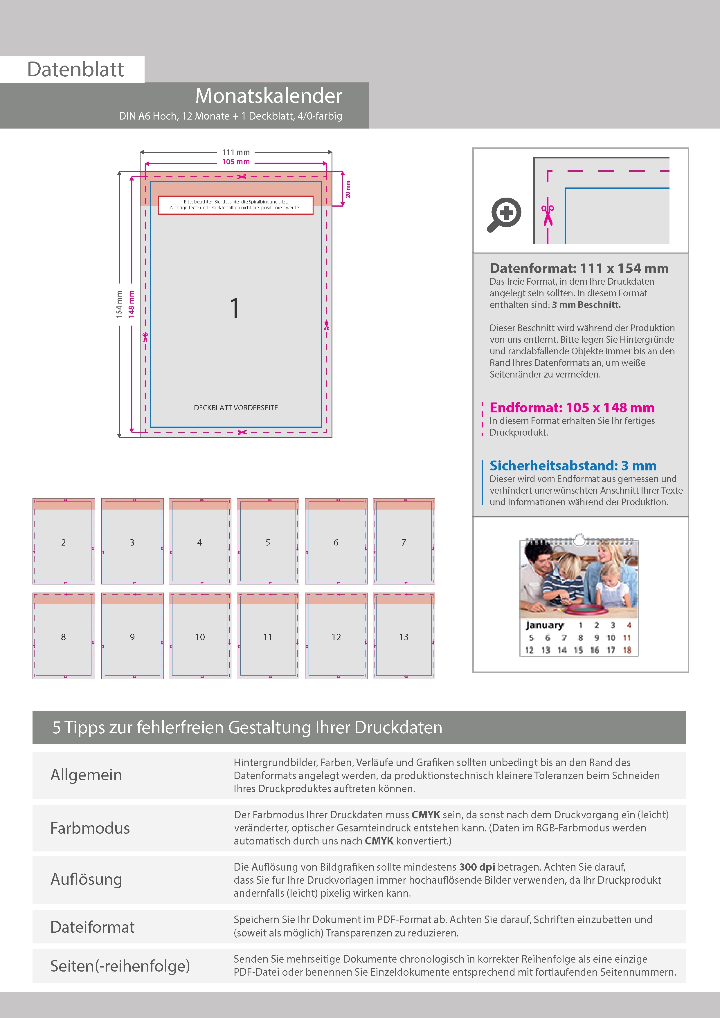Monatskalender 13 Blatt (12 Monate + Deckblatt)