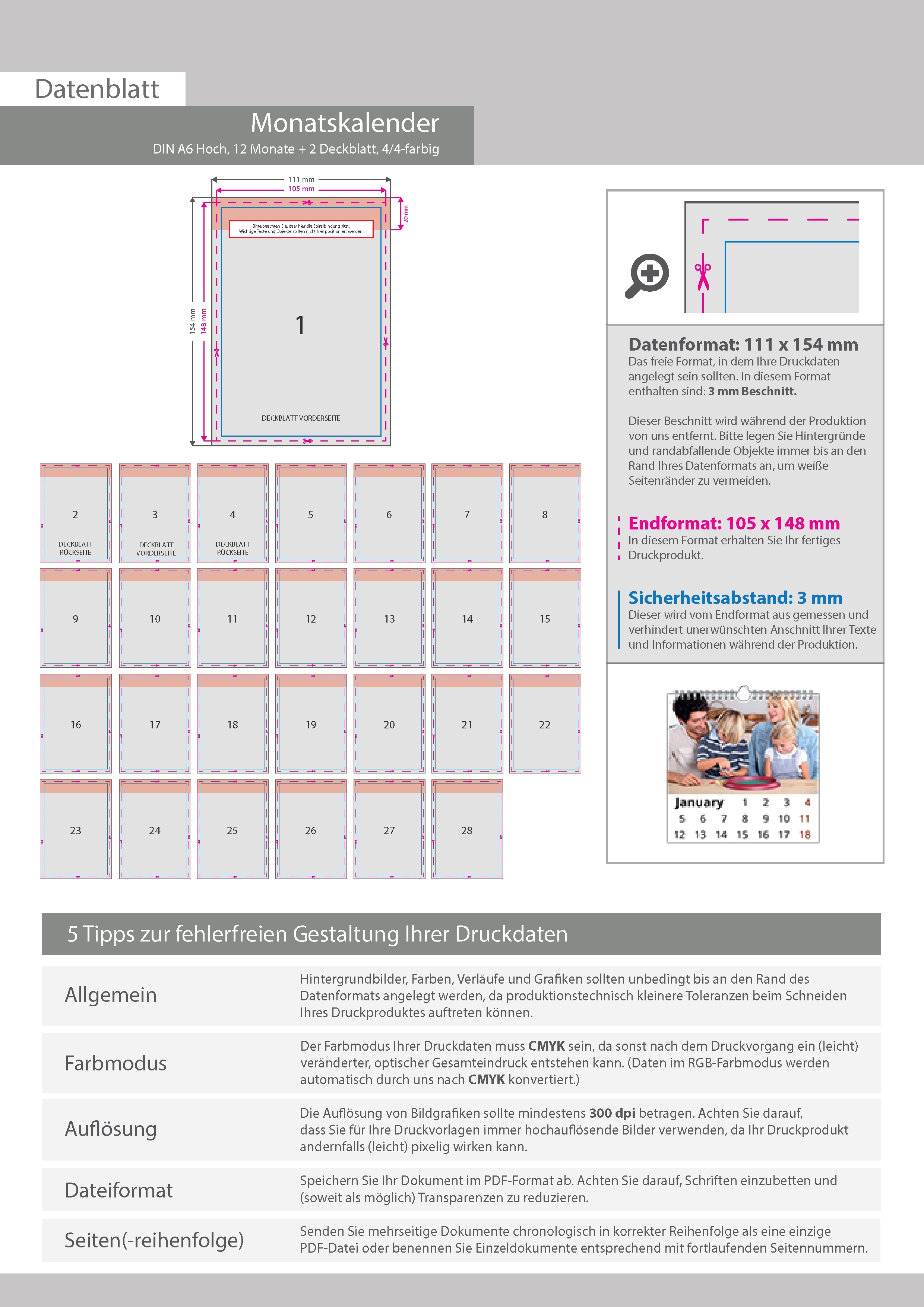Monatskalender 14 Blatt (12 Monate + 2 Deckblätter)