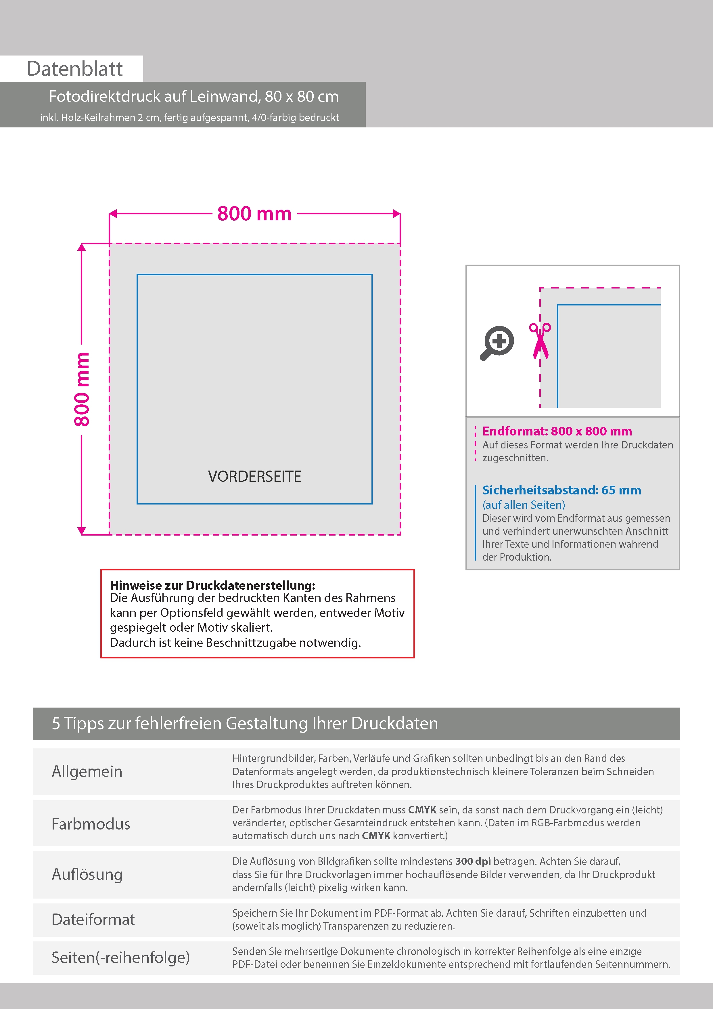 Fotodirektdruck auf Leinwand 80 x 80 cm inkl. Holz-Keilrahmen 2 cm, fertig aufgespannt, 4/0-farbig bedruckt